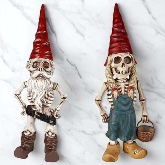 Unverzichtbare Grusel-Deko : Das Skelett-Zwergenpaar für Ihren Garten !