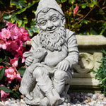 Handgefertigter Gartenzwerg aus Stein mit Hase – Ein Meisterwerk Englischer Handwerkskunst für Ihren Garten